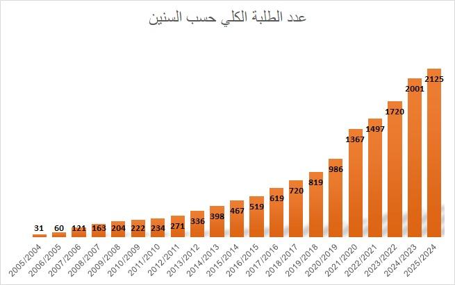1-إحصائية لأعداد الطلبة الكلي حسب السنة الدراسية.