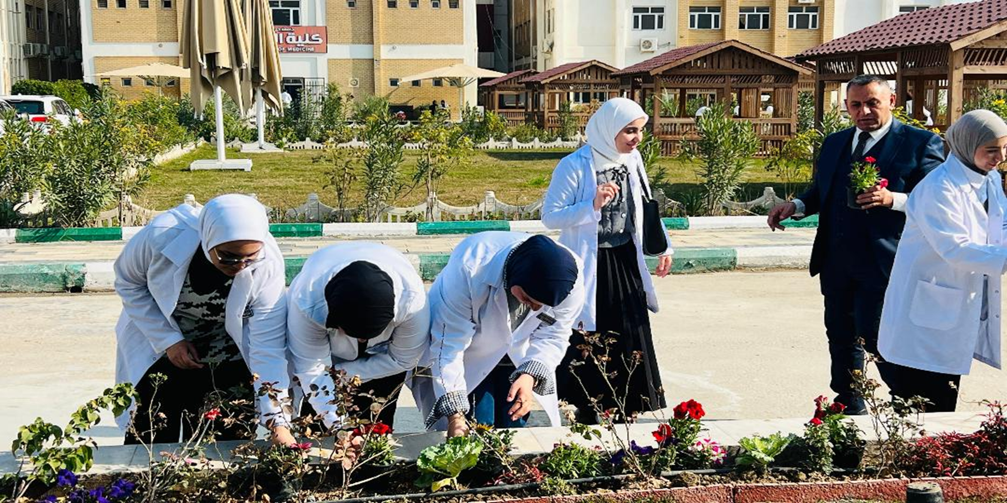 بأشراف مباشر من قبل السيد عميد كلية الطب جامعة ذي قار الاستاذ الدكتور وجدي جبار ماجد نظمت عمادة الكلية هذا اليوم الاحد الموافق ٢٨ / ١٣ / ٢٠٢٥ حملة تطوعية لزراعة الزهور والاشجار والشتلات الزراعية في حدائق كلية الطب وبمشاركة السيد معاون العميد للشؤون الادارية الاستاذ المساعد الدكتور فائز خلف السرحان وعدداً من السادة رؤساء الفروع العلمية وأساتذة وطلبة الكلية وتأتي هذه المبادرة التطوعية بناءاً على توجيهات وزارة التعليم العالي والبحث العلمي ورئاسة جامعة ذي قار وحرصاً من عمادة الكلية على زيادة المساحات الخضراء و زيادة جمالية حدائق الكلية وتوفير بيئة جامعية جميلة و ملائمة لطلبتنا الاعزاء.