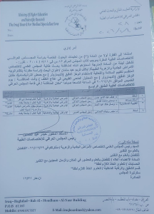 أستاذة من كلية الطب جامعة ذي قار تشارك بمناقشة بحوث تخرج طلبة البورد العراقي