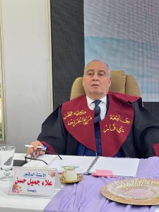 – وكذلك مناقشة بحث الطالب حاتم كريم شنيور الذي قدم بحثاً تخصصياً ركز على التحديات الجراحية المعاصرة، معتمداً على تحليل إحصائي وبيانات سريرية دقيقة تعكس واقع الممارسة الطبية في المستشفيات التعليمية وقد تم التركيز على دور التنظير البطني في حالات البطن الحاد الرضّية وغير الرضّية.