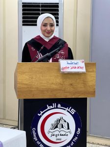 – الباحثة إيلاف فائز جابر والتي إستعرضت في بحثها دراسة علمية رصينة تناولت جوانب متقدمة في الجراحة، مسلطةً الضوء على العلاج بالمنظار للكتلة الزائدة الدودية المُكتشفة عرضياً إثناء إجراء استئصال الزائدة الدودية بالمنظار.